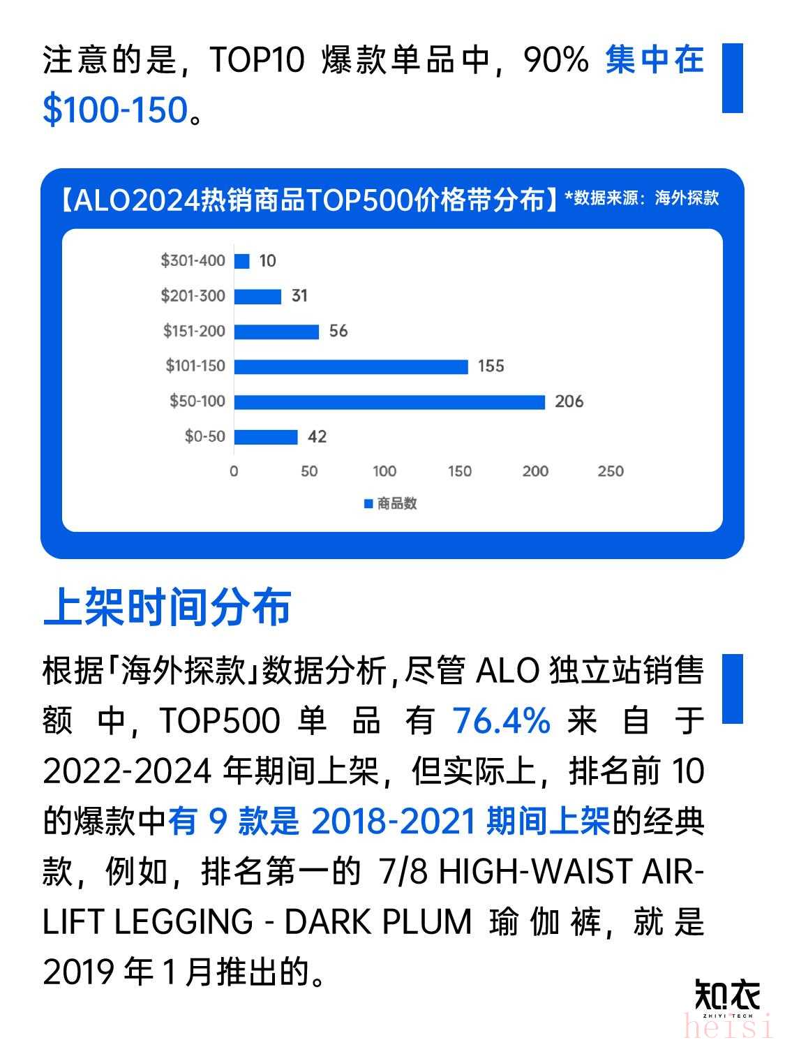 基于此,知衣科技「海外探款」將統(tǒng)計分析Alo相關(guān)數(shù)據(jù),從爆品策略與營銷策略兩大角度展開,作為趨勢參考: