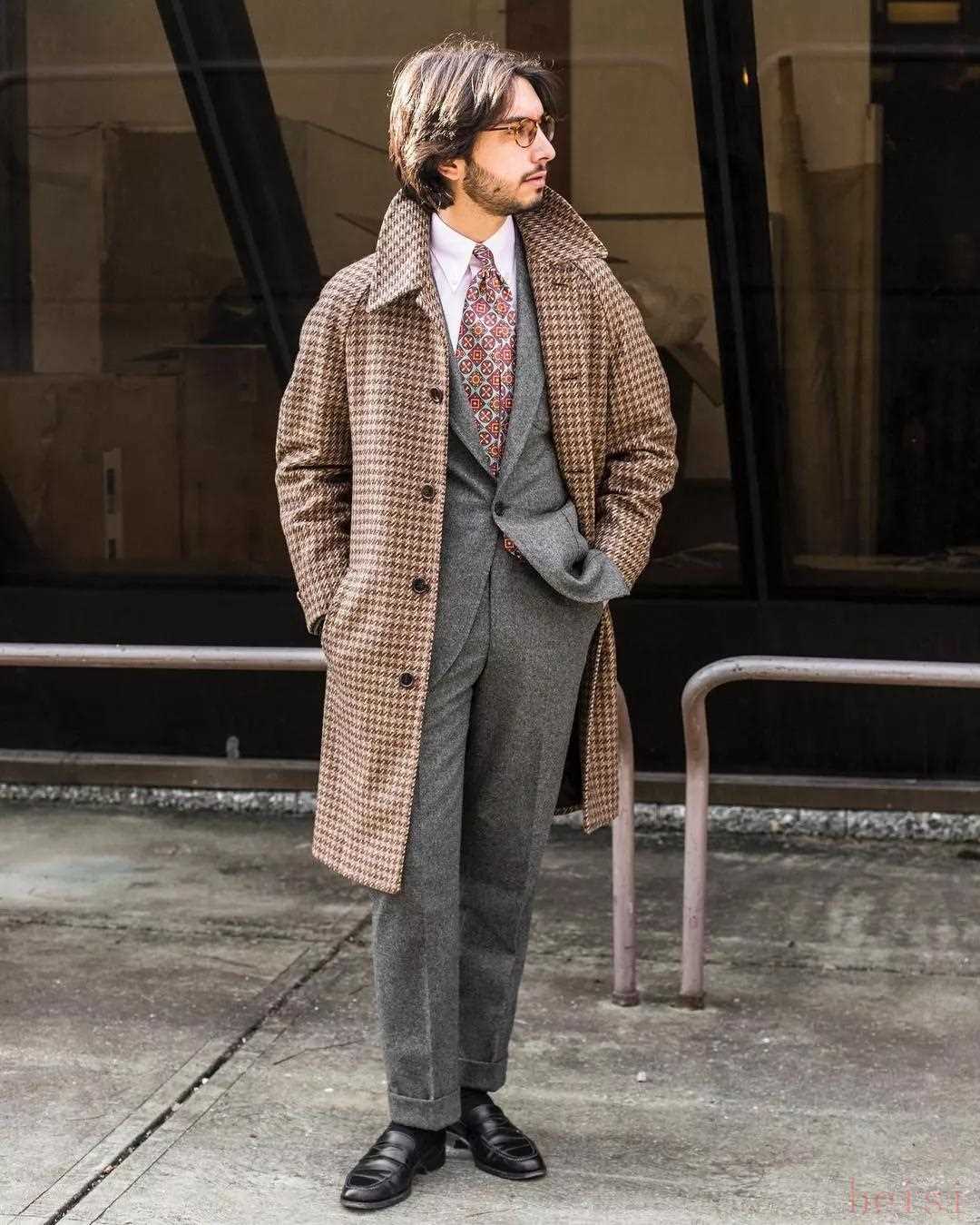 在版型上,Mac Coat 為直筒版型,過膝左右的長度,下擺后面開單衩,十分干脆利落。其實(shí) Mac Coat 跟大家常說的 Balmacaan Coat 款式也相當(dāng)接近,后面我們會說說它們的區(qū)別。