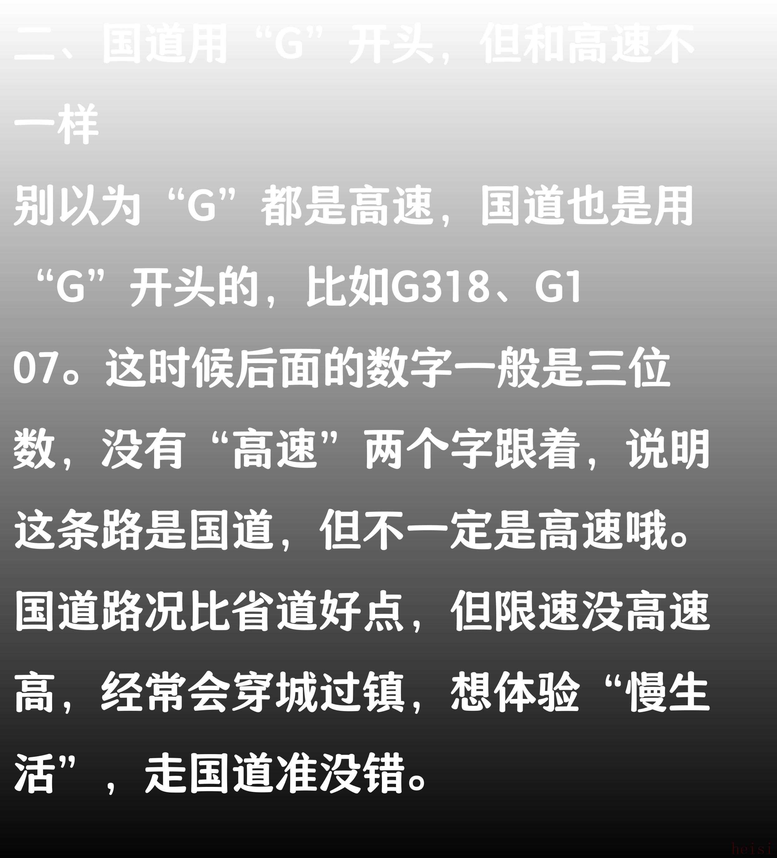 其實啊,高速一般用“G”,國道也是“G”,省道用“S”,認準這些字母,路上就不迷糊了。