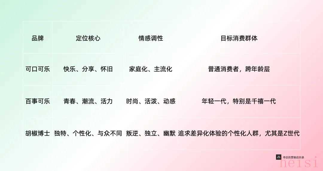 為了打破這種局面,胡椒博士找到了自己的破局之道:用“獨(dú)特”和“與眾不同”的品牌定位開辟差異化市場。