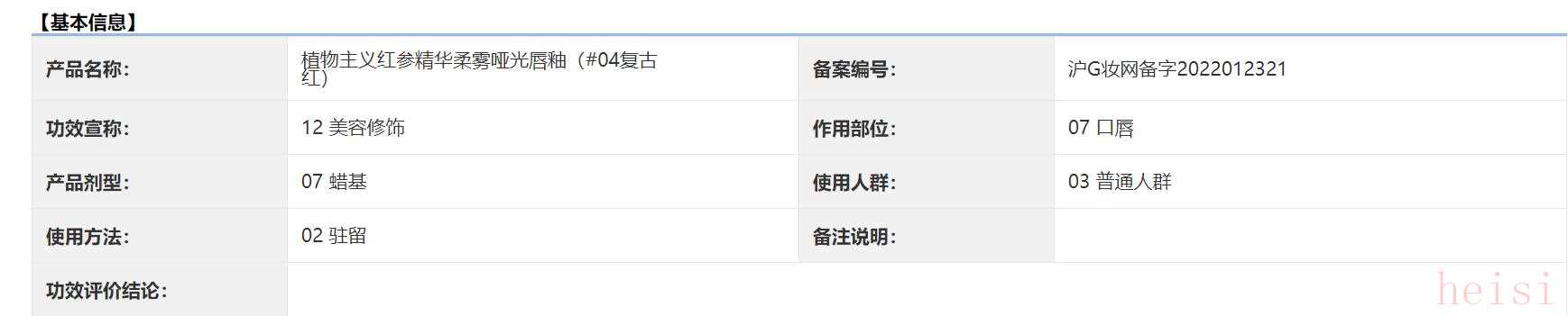 例如,“植物主義本妍專賣店”熱銷的紅參精華柔霧啞光唇釉,宣稱“準孕婦專用”,客服也稱“植物主義的產品都是孕媽媽適用的,對孕媽媽和寶寶沒有任何負擔?!钡浾卟樵儑a普通化妝品備案信息了解到,植物主義紅參精華柔霧啞光唇釉(#04復古紅)的功效宣稱為“美容修飾”,使用人群為普通人群。