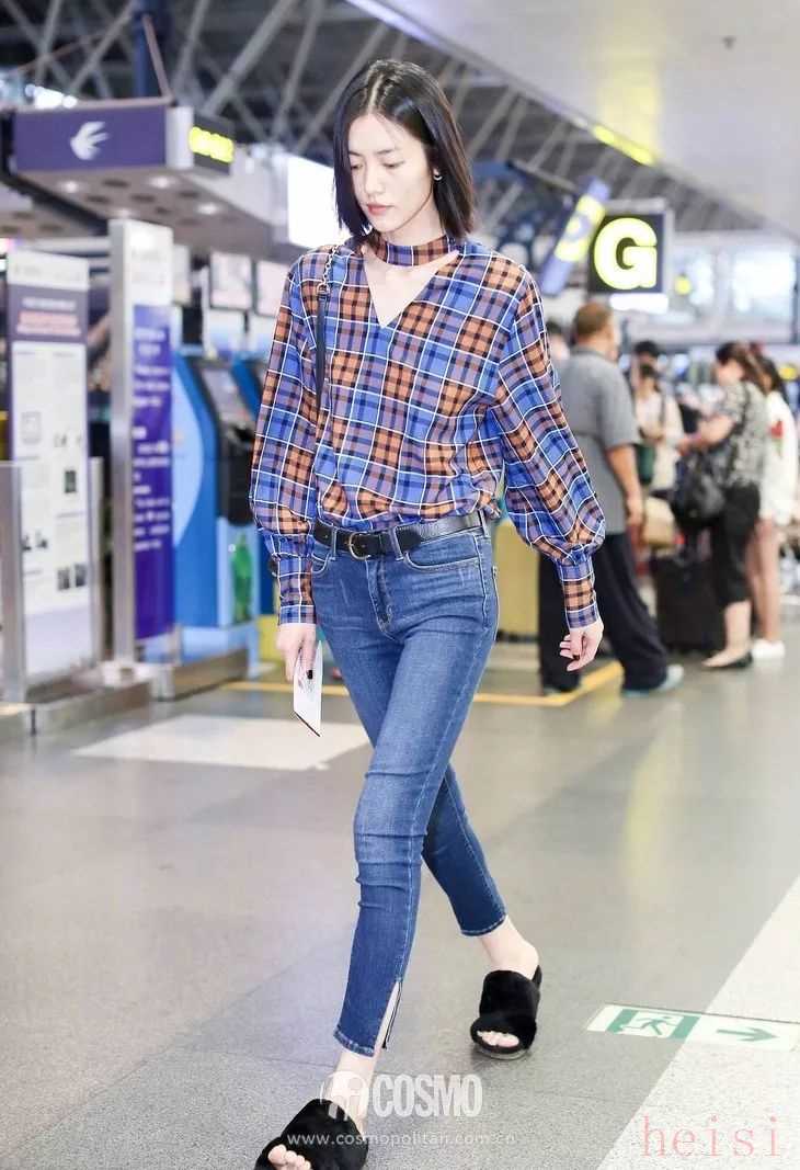 關(guān)曉彤格紋大衣配白T,下身再搭黃色短裙,長腿一覽無余,青春感十足。再踩一雙毛毛拖,為整體造型增色不少。