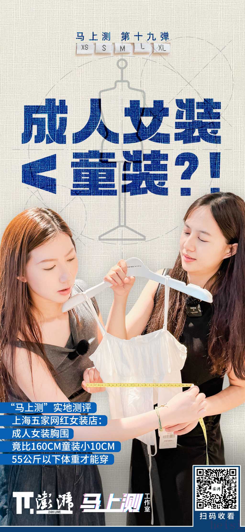 “這件小了,完全穿不上身;那件也不行,肩膀卡住了!這些衣服究竟是女裝還是童裝?!”近年來,關(guān)于女裝尺碼“縮水”的吐槽越來越多,帶著這樣的疑問,澎湃新聞“馬上測”實(shí)探多家較火的網(wǎng)紅女裝店。