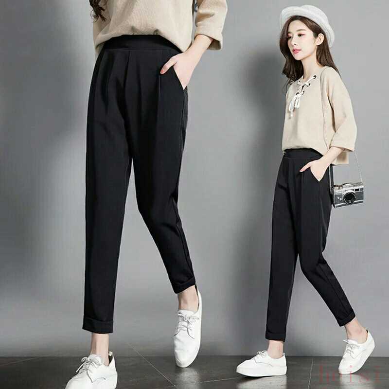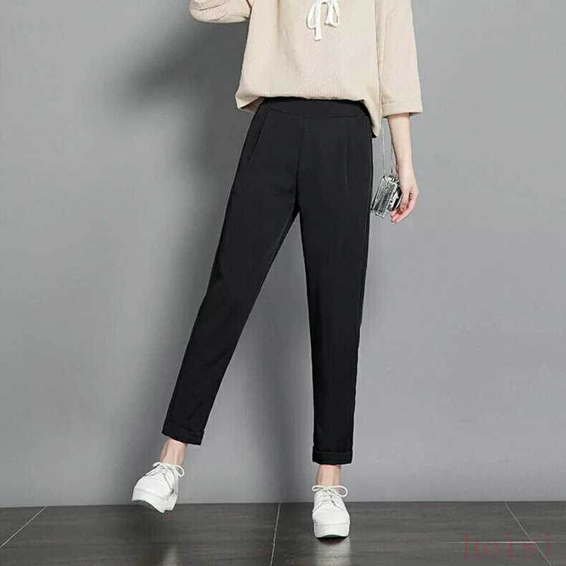 TOP6:Viney2020夏季新款哈倫褲寬松直筒女褲西裝休閑高腰小腳九分顯瘦黑色百搭蘿卜褲