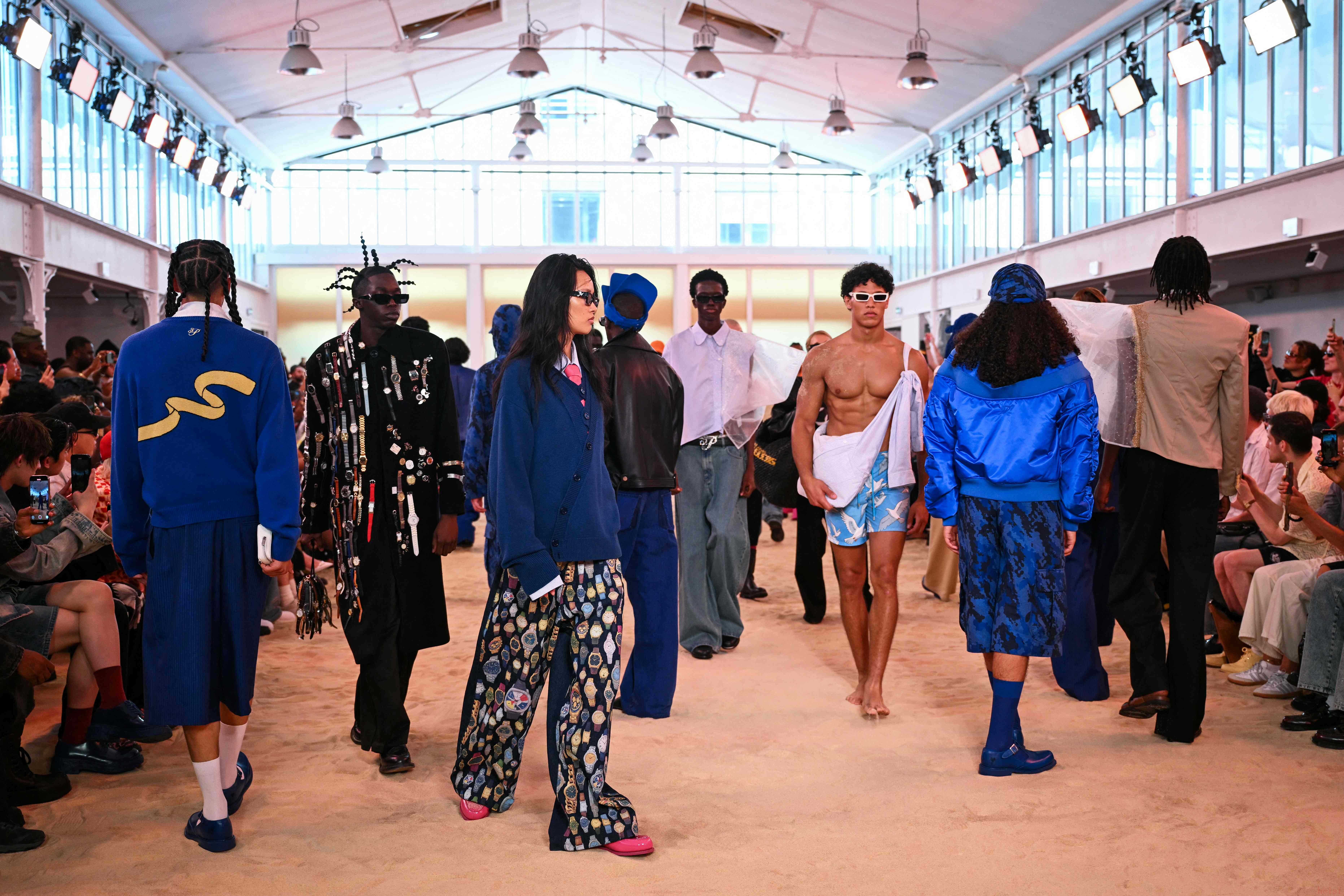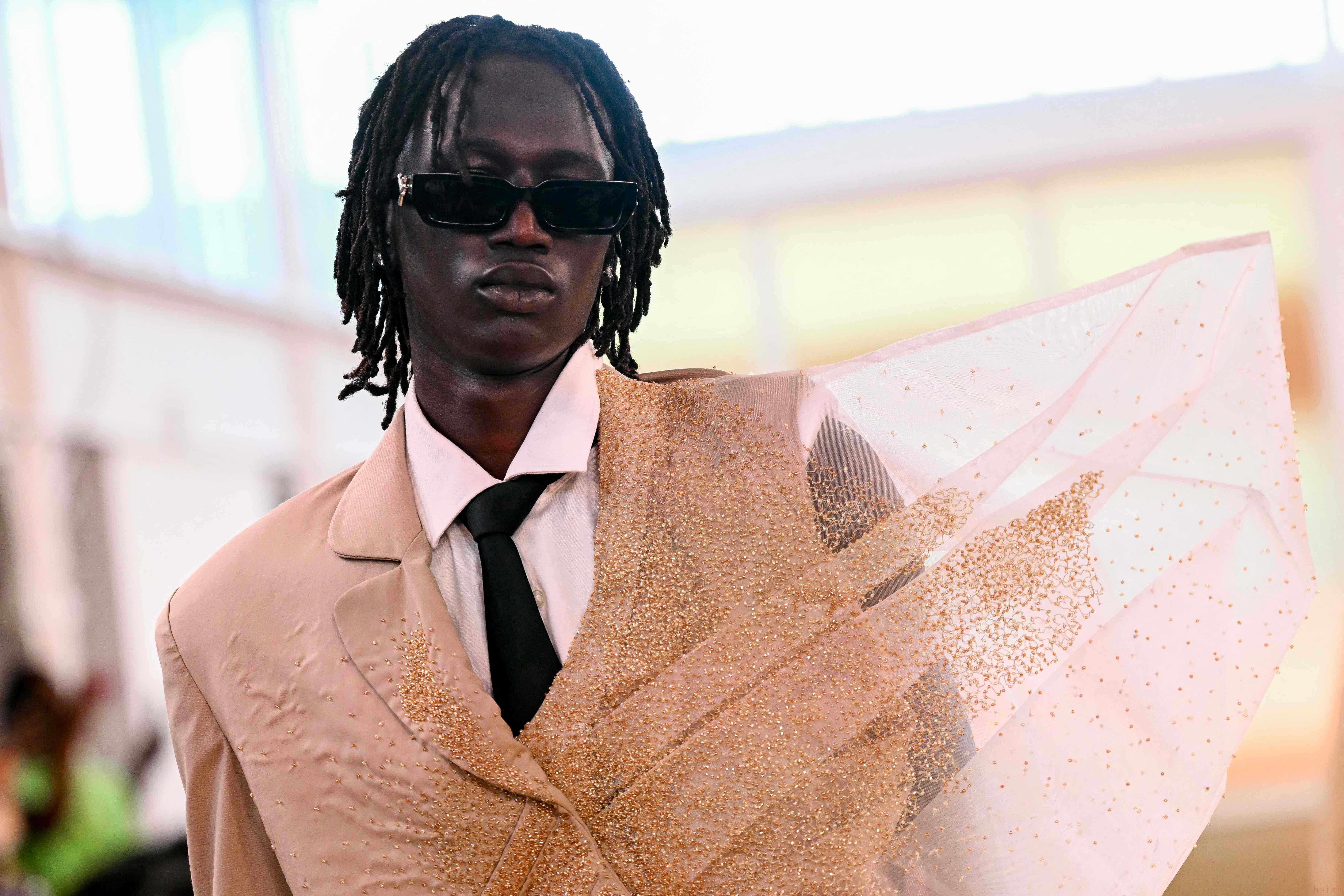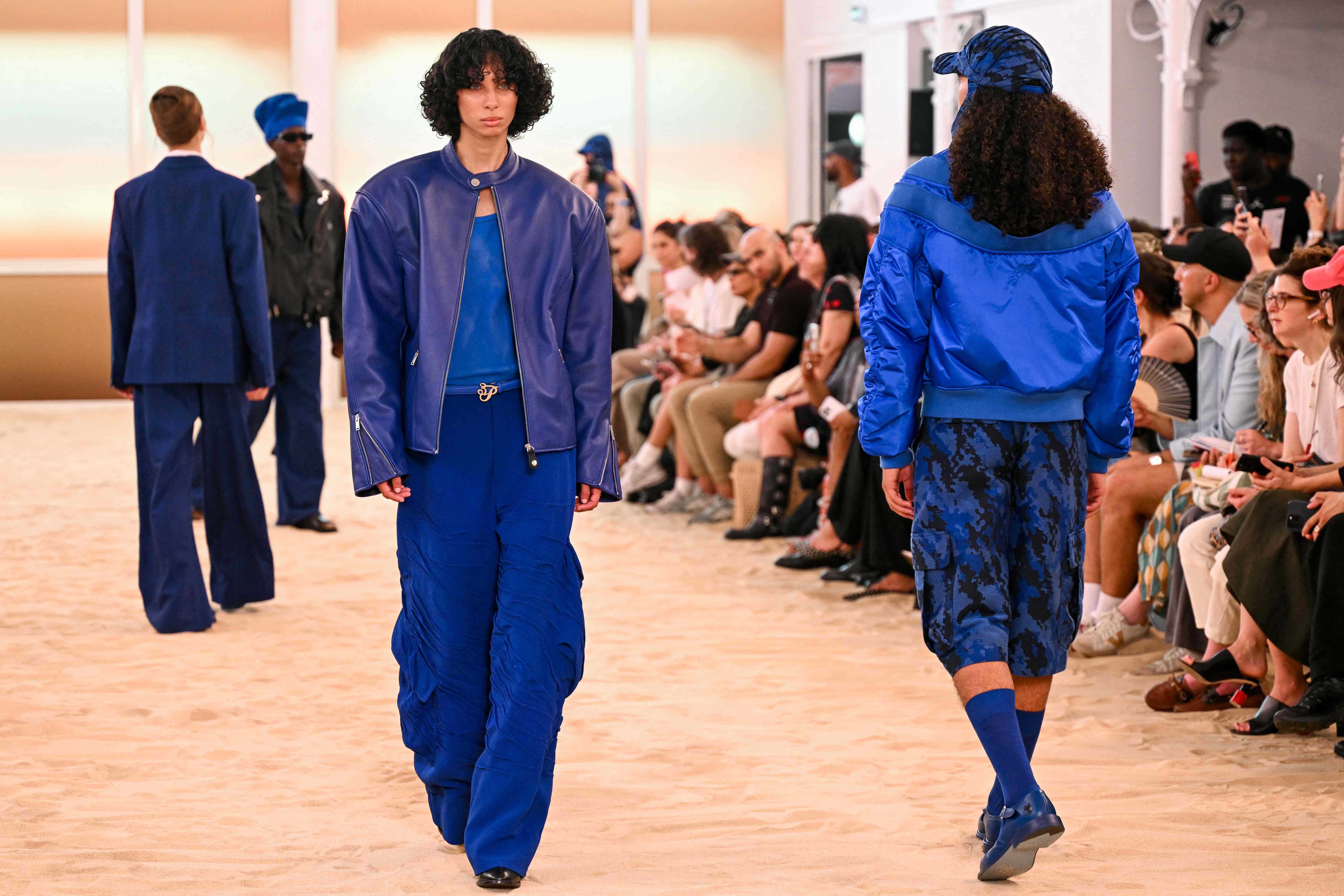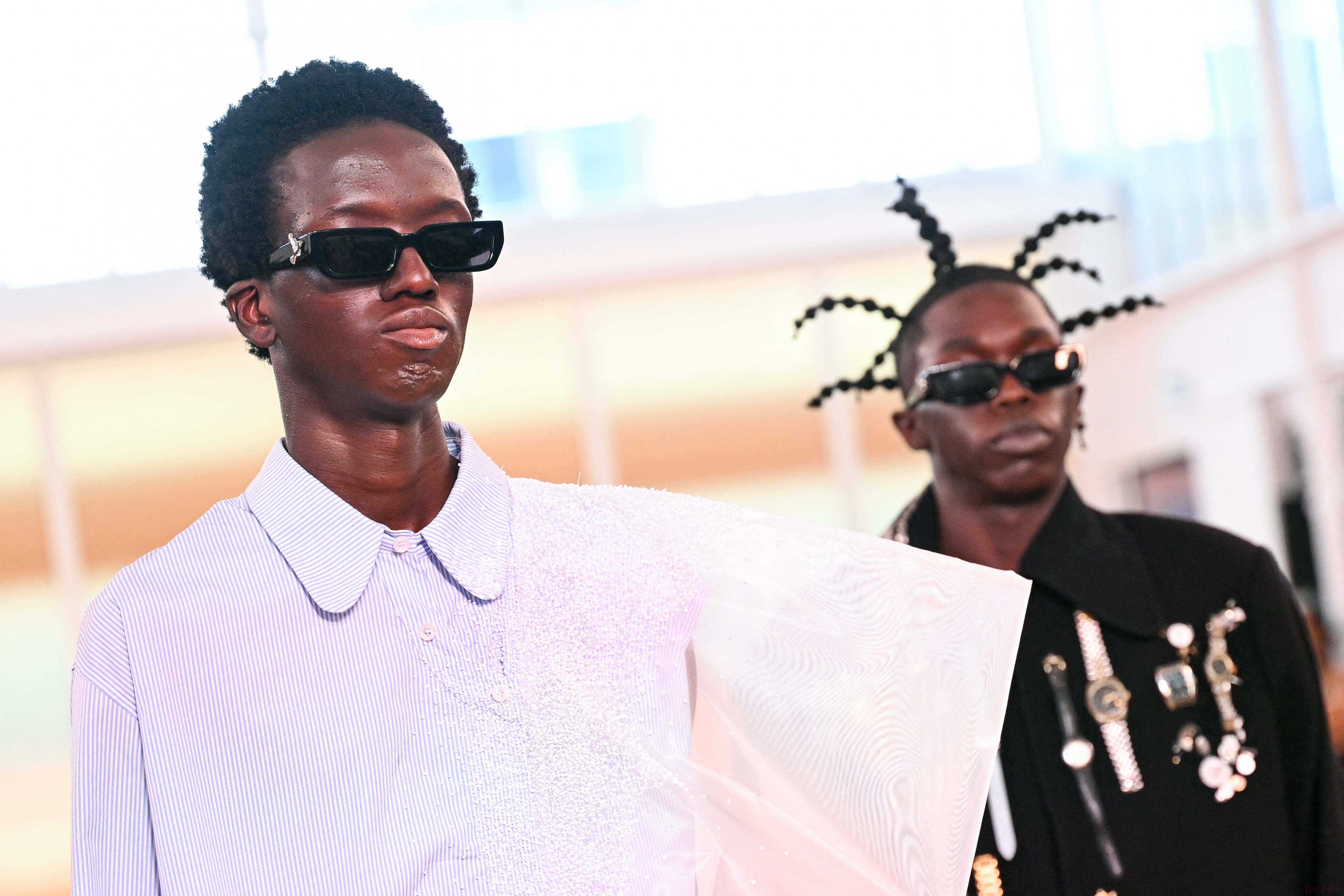 6月25日,模特在法國巴黎男裝周上展示3.Paradis品牌的2026春夏時(shí)裝新品。新華社/法新