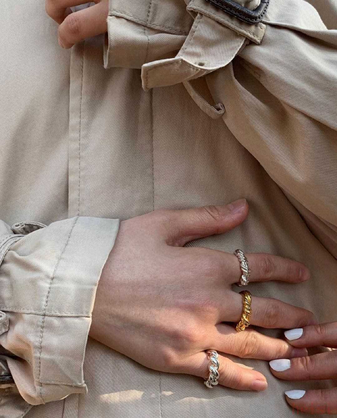 他們家以厚厚的戒指和現(xiàn)代的美學(xué)而聞名,每件物品都可以單獨(dú)佩戴,也可以分層,分層就感覺更酷了。