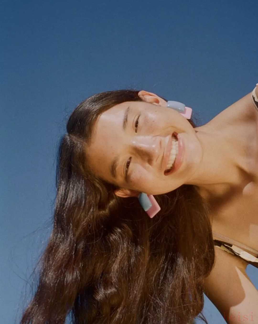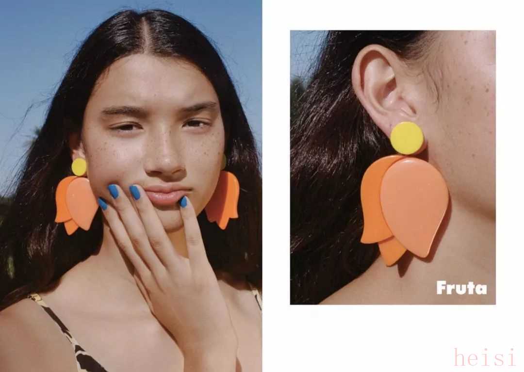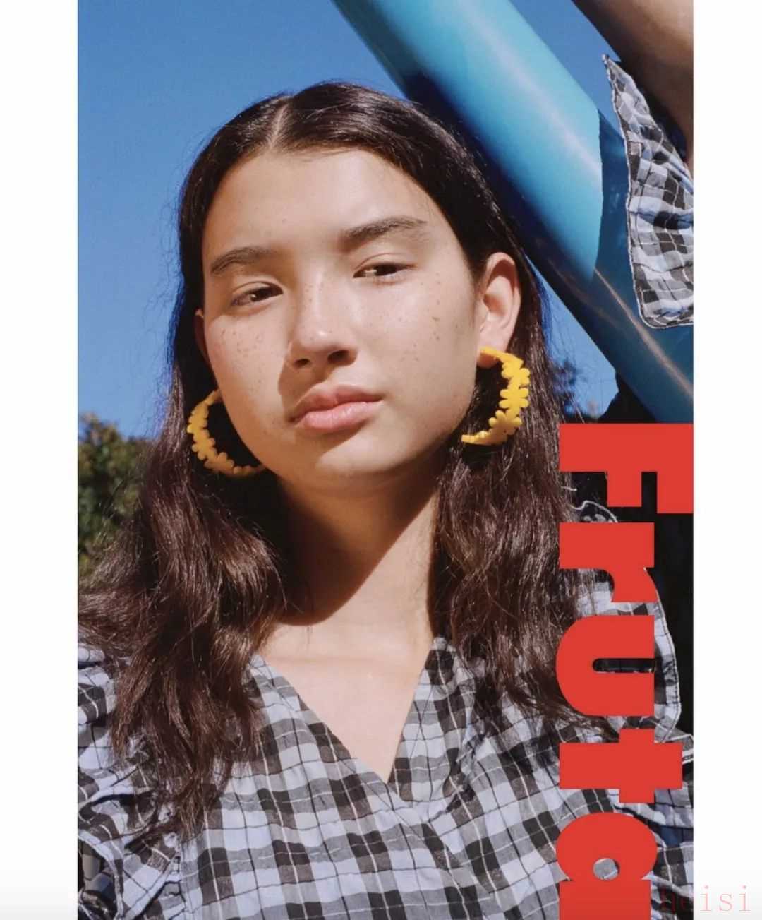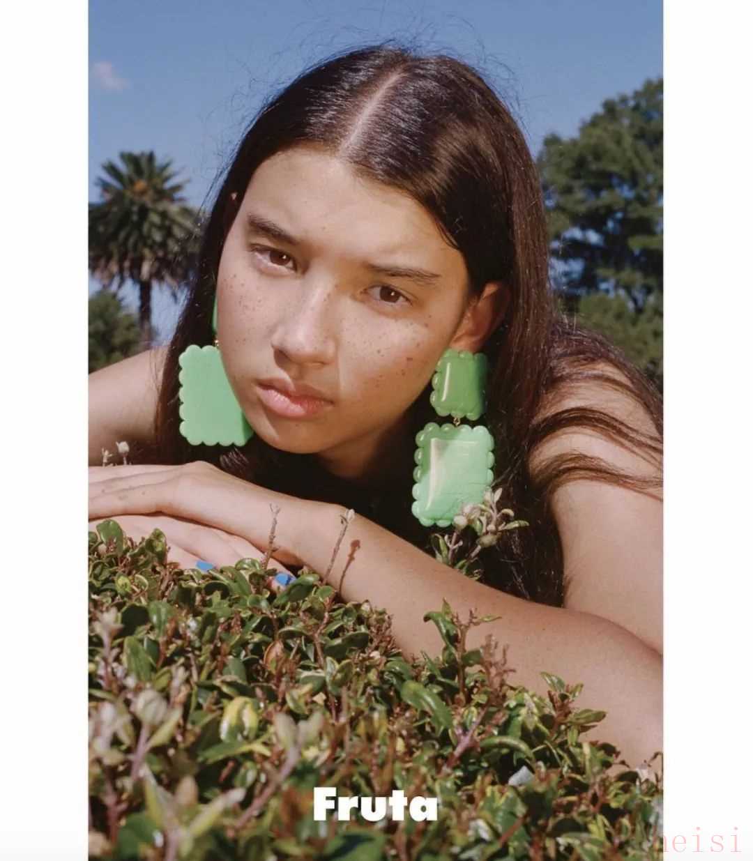 尤其是這個讓我第一眼就種草的系列,有小雀斑的模特在陽光下的模樣非??扇恕斎涣?,亮點還是Fruta家的耳環(huán),不信的話給你們品品。