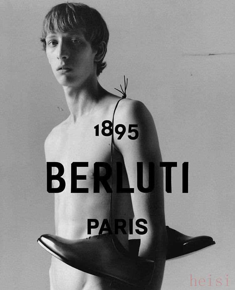 廣告片中,裸體男模們身上掛著Berluti的經(jīng)典束帶淺口牛津鞋。Van Assche當時在《女裝日報》的采訪中表示,樹形logo和束帶淺口鞋是對品牌創(chuàng)始人Alessandro Berluti的致敬,后者在1895年創(chuàng)立了該品牌,并用這一經(jīng)典款式為品牌打開了局面。