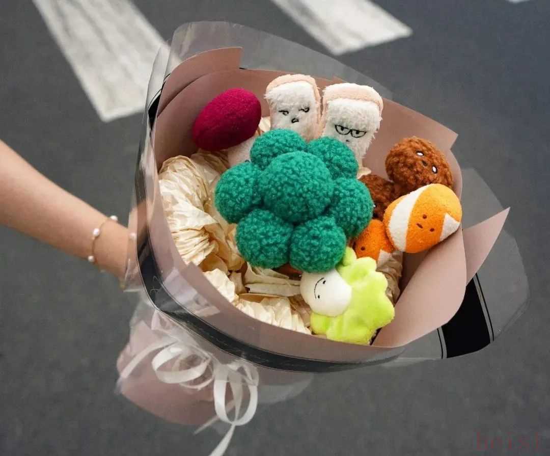 Jellycat快閃店排隊的人拐出八個彎,國慶期間一天賣上百萬;陜西麻辣燙花束,吸引20萬人搶購;山西毛絨肉夾饃也賣出2萬件。