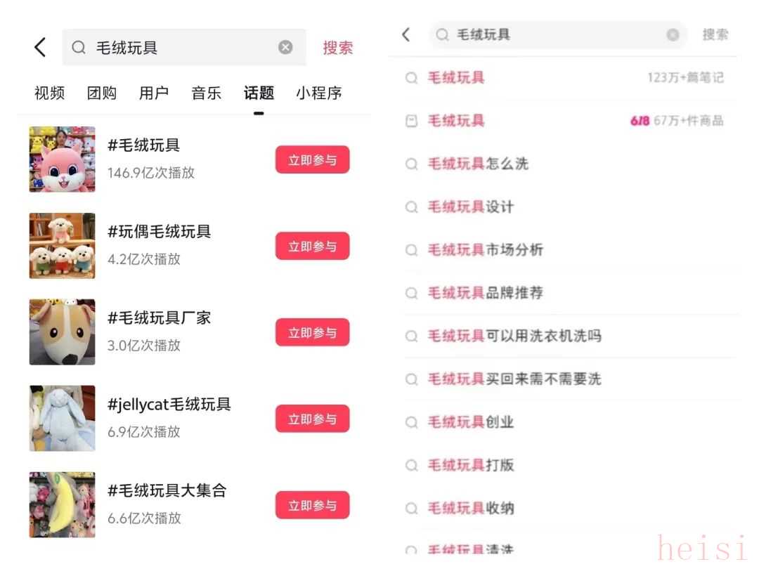 抖音上#毛絨玩具相關(guān)話題播放次數(shù)超146.9億次,小紅書中#毛絨玩具相關(guān)筆記也超過123萬篇。