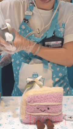 Jellycat的店員,一邊假裝給毛絨蛋糕擠奶油,一邊耐心叮囑你回家多給小熊吃奶油。