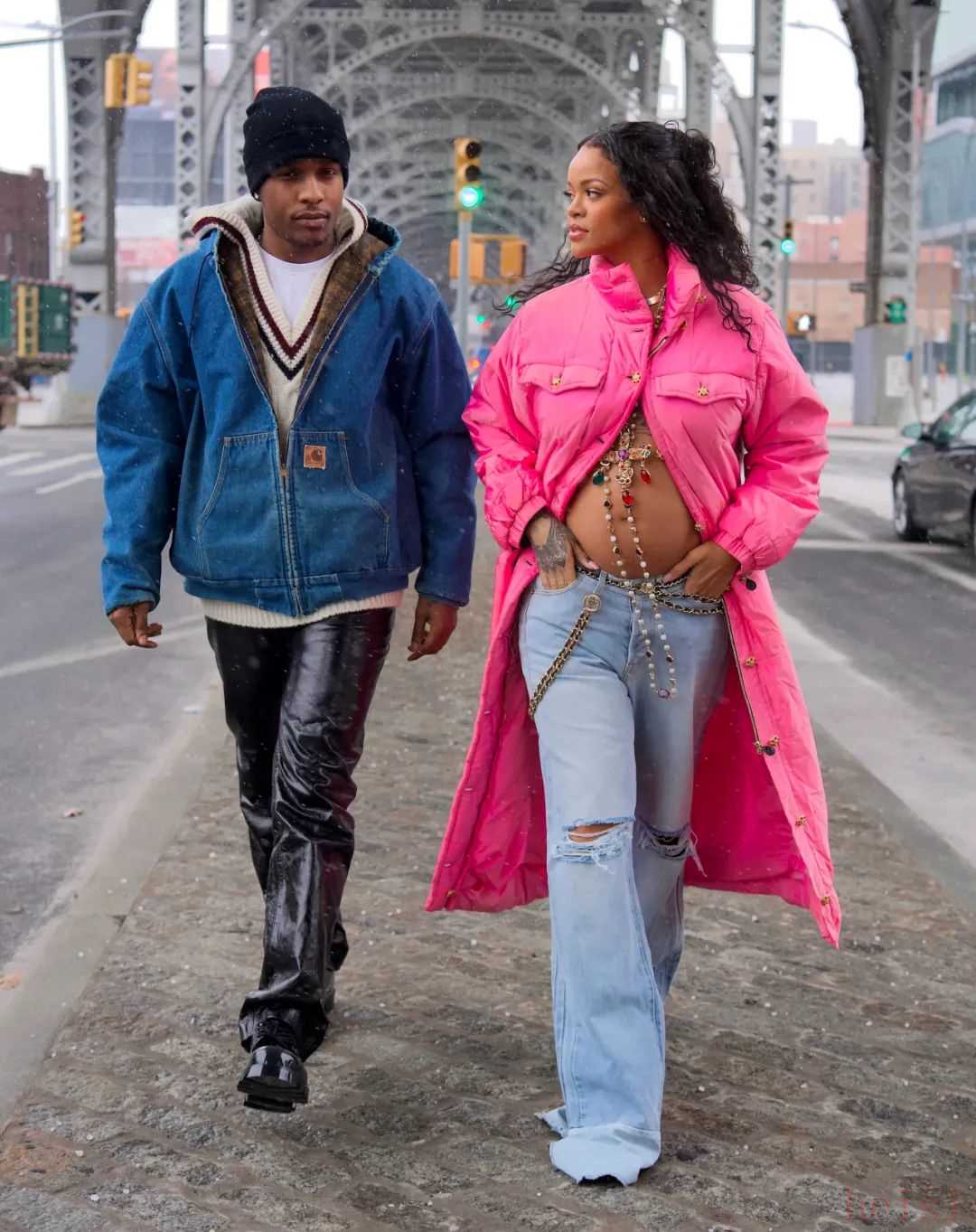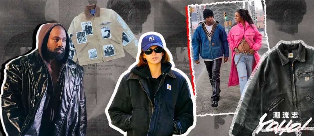 隨后這股熱潮在更多人身上得到了體現(xiàn);從 Travis Scott、Sean Wotherspoon、Justin Bieber 到 Hailey Bieber、Kaia Gerber 等以好品味著稱的「頂流辣妹」;就連 A$AP Rocky 和 Rihanna 官宣懷孕時,也出現(xiàn)了 Vintage Carhartt 的身影。