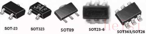 PGA封裝樣式 其芯片基板多數(shù)為陶瓷材質,也有部分采用特制的塑料樹脂來做基板,在工藝上,引腳中心距通常為2.54mm,引腳數(shù)從64到447不等。 這種封裝的特點是,封裝面積(體積)越小,能夠承受的功耗(性能)就越低,反之則越高。這種封裝形式芯片在早期比較多見,且多用于CPU等大功耗產(chǎn)品的封裝,如英特爾的80486、Pentium均采用此封裝樣式;不大為MOS管廠家所采納。 4、小外形晶體管封裝(SOT) SOT(Small Out-Line Transistor)是貼片型小功率晶體管封裝,主要有SOT23、SOT89、SOT143、SOT25(即SOT23-5)等,又衍生出SOT323、SOT363/SOT26(即SOT23-6)等類型,體積比TO封裝小。