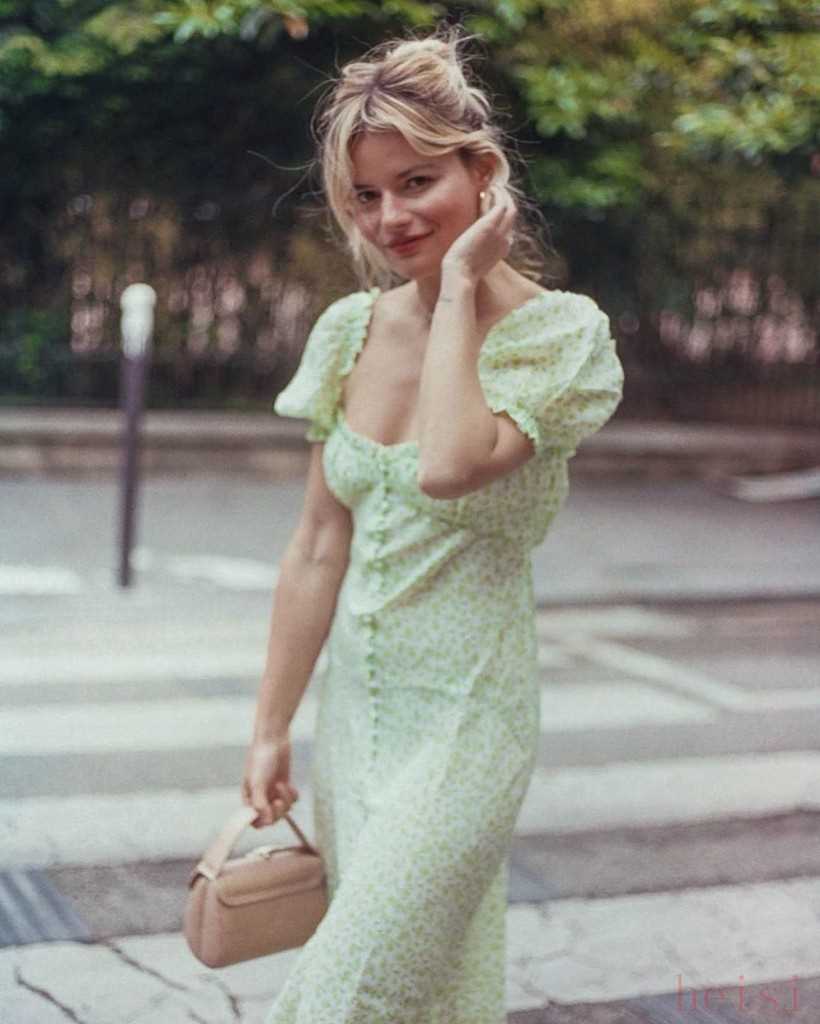 不難發(fā)現(xiàn),faithfull the brand的印花連衣裙大多是清新的小碎花,顏色也都是清新的藍色、綠色,有一種看著它就像穿上去度假的沖動。