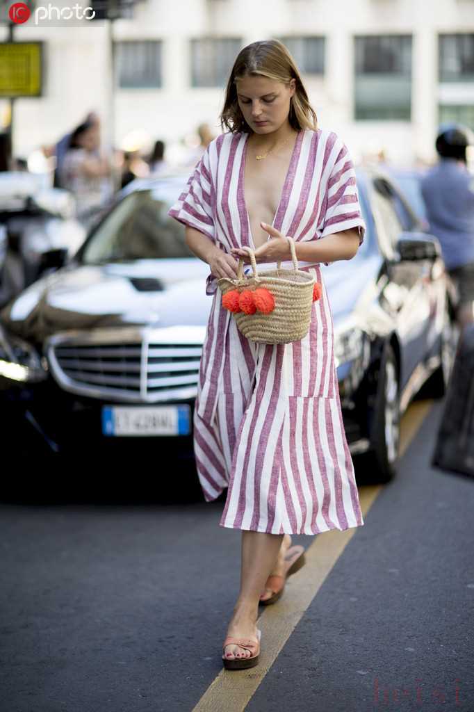 從腳環(huán)開始色彩就是鮮艷耀眼的,所以印花裙也都是比較鮮明的顏色。