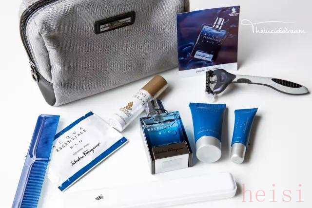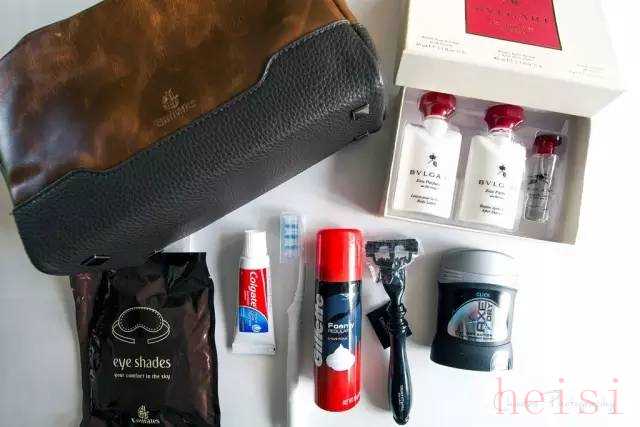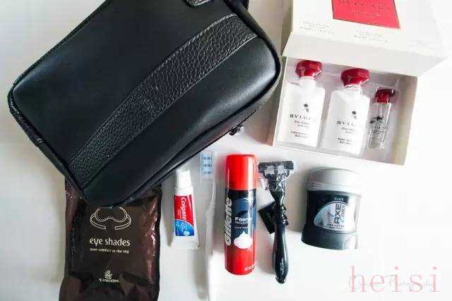 內(nèi)容:牙具,剃須套裝,止汗劑,眼罩,香水,須后潤(rùn)膚露,手霜,梳子