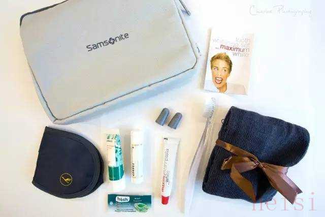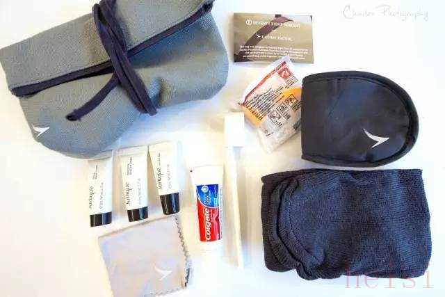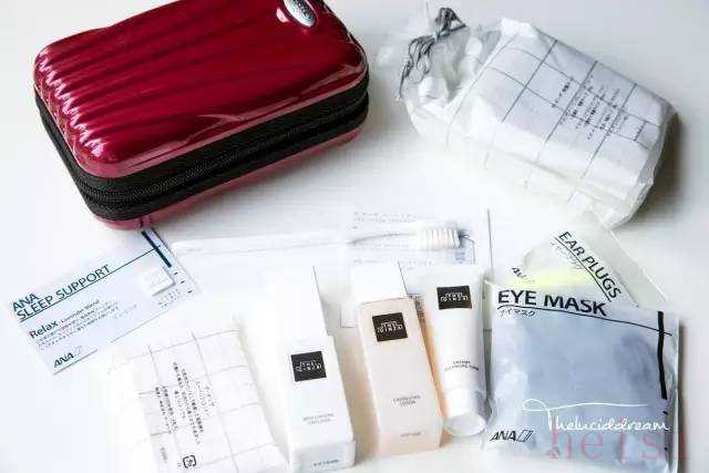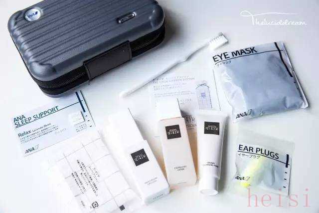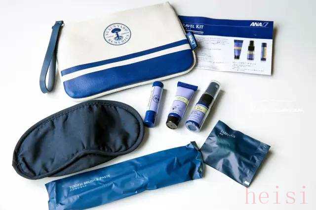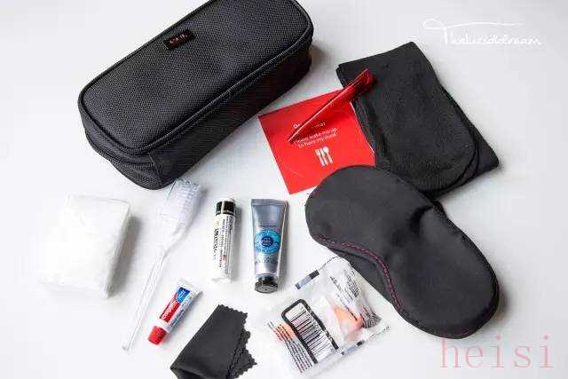 內(nèi)容:牙具,剃須套裝,耳塞,襪子,眼罩,濕巾,化妝棉,棉簽,指甲銼,助眠噴霧,面霜,潤(rùn)膚露,唇膏,薄荷糖