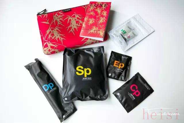 內(nèi)容:牙具,耳塞,襪子,眼罩,濕巾,化妝棉,棉簽,指甲銼,助眠噴霧,面霜,潤(rùn)膚露,唇膏,薄荷糖 ,LE LABO沐浴套裝。