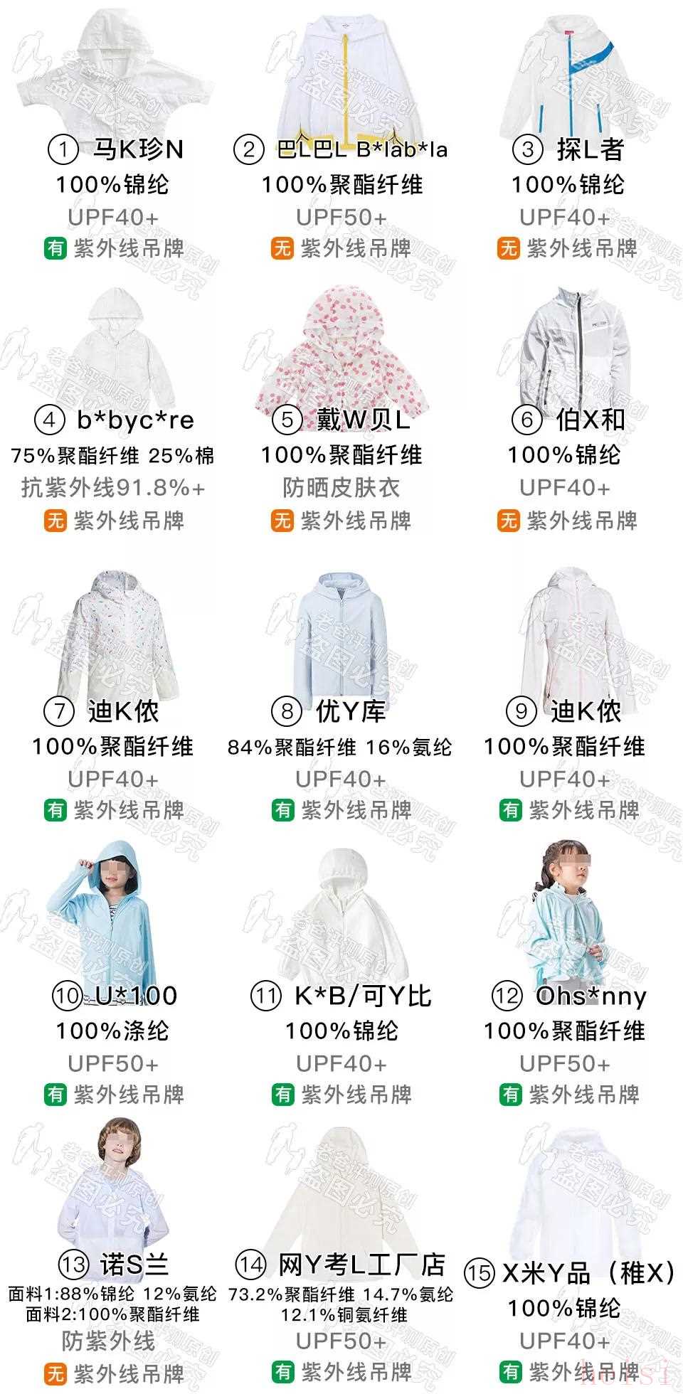 貼心魏老爸這次征集了 15 個(gè)品牌的兒童防曬衣做評測,樣品均購買于官方旗艦店,且都自稱能防曬、有抗紫外線性能。