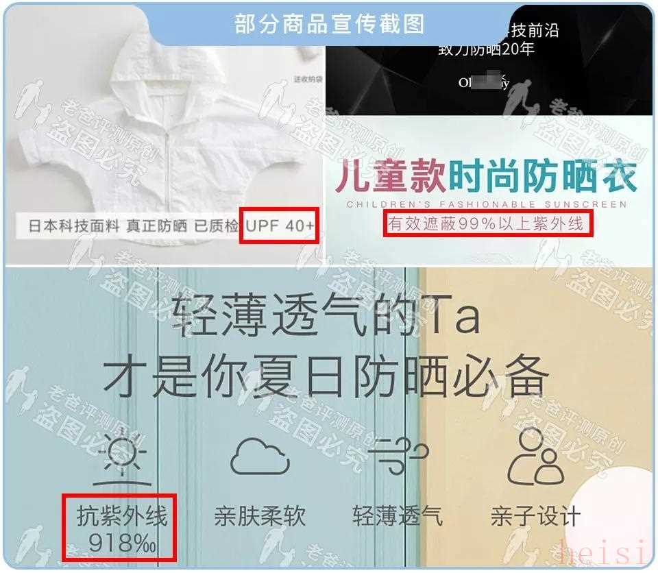 這是什么神仙宣傳??!防不防曬僅憑一張嘴?兒童皮膚相對更為敏感,以上舉例的這些兒童防曬衣,在有效防曬性能方面還有不足,寶爸寶媽們注意避坑。