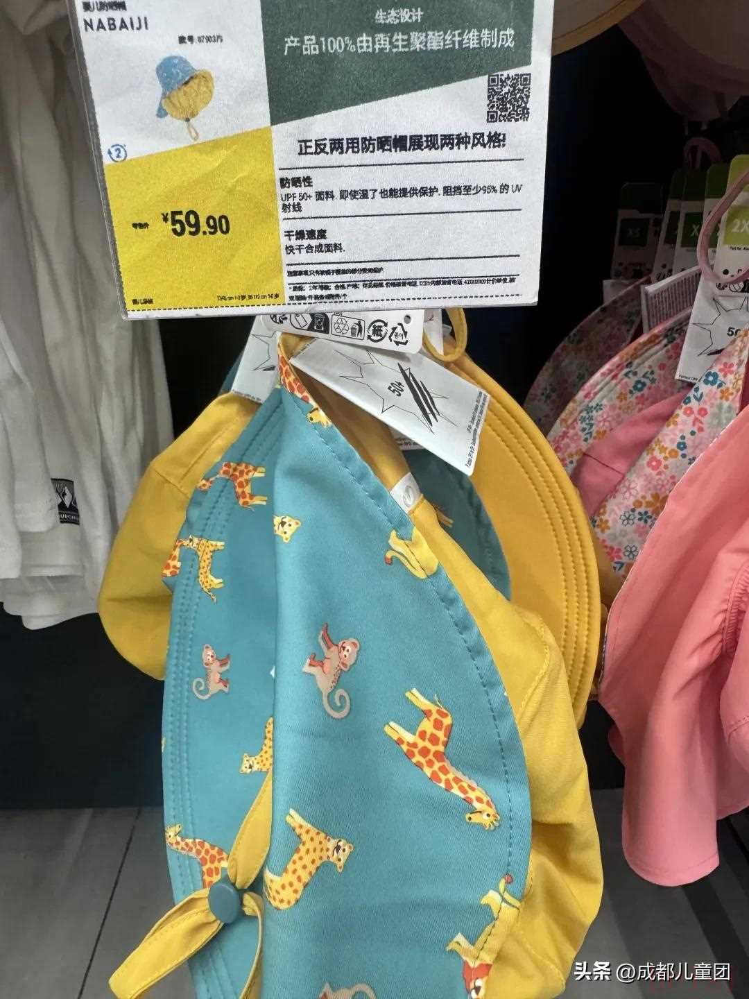 迪卡儂的兒童防曬衣和蕉下一樣,選擇很多,也都有標(biāo)出UPF50+的指數(shù)。