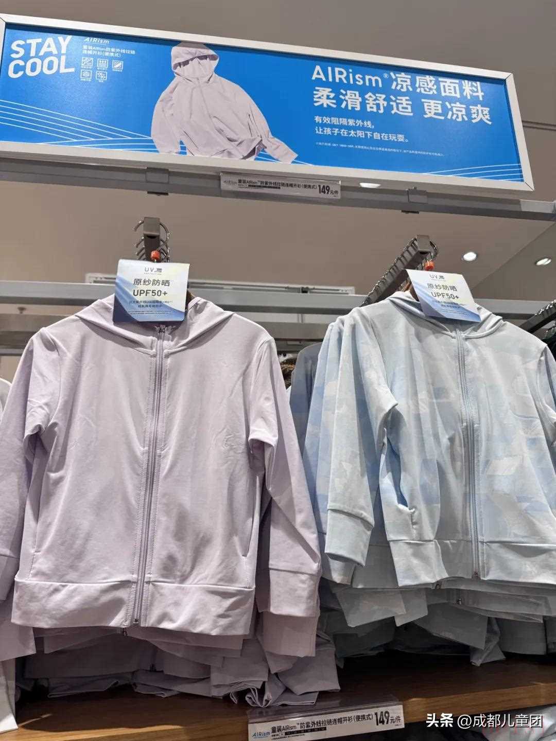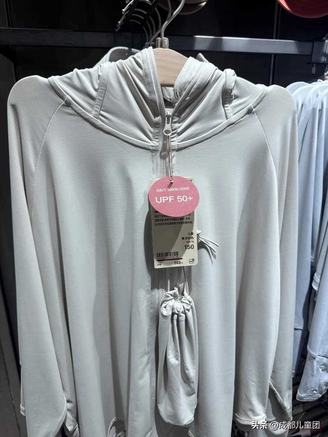 優(yōu)衣庫的兒童防曬衣買的人比較多,吊牌上指數(shù)UPF>50,原紗面料,防紫外線標(biāo)準(zhǔn)達(dá)到??钍交A(chǔ)百搭,價格適中。