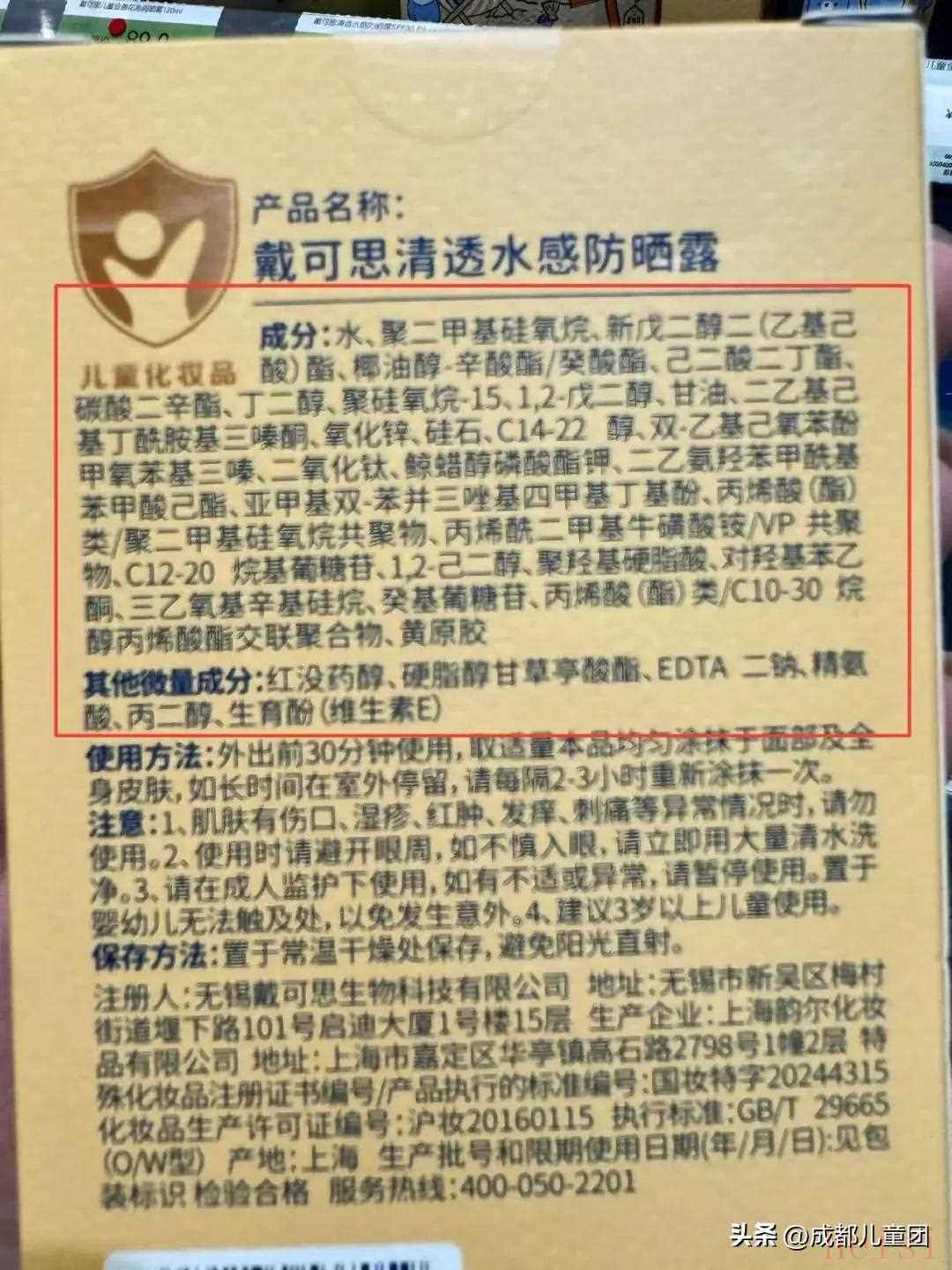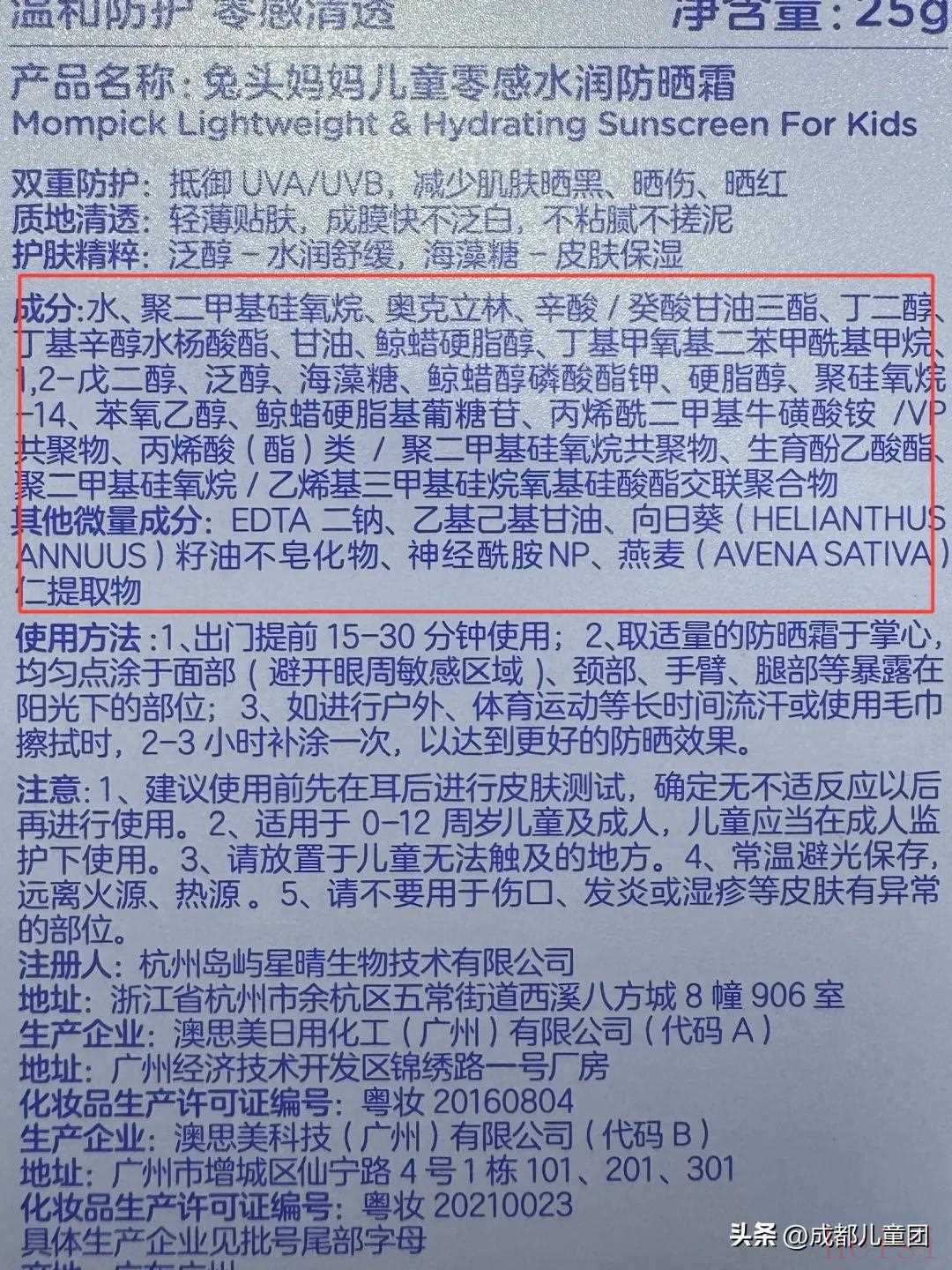理論上這款成分符合要求,沒有明顯對兒童皮膚不好的東西。不過從使用感來說,有點泛白和黏膩。