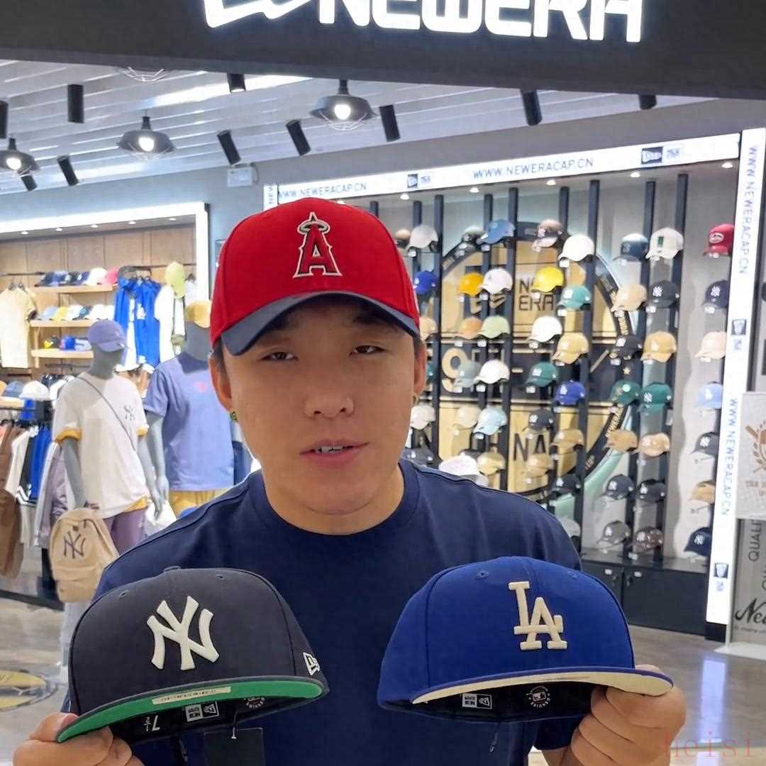 老王手里的這兩頂。棒球帽你們熟悉嗎?經??吹降腘ew York NY標。一頂是LA的兩個標志,這可不是什么品牌,一頂是紐約洋基隊,一頂是洛杉磯道奇隊,美國職業(yè)棒球聯(lián)賽的老牌勁旅,隊史幾十年,NewEra品牌相互成就。