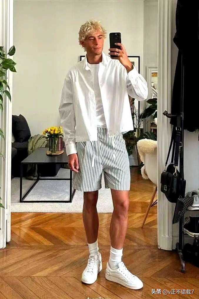 素人博主用oversizedT恤搭拳擊短褲,襯衫配睡褲,硬是把居家服拗出高級(jí)感。