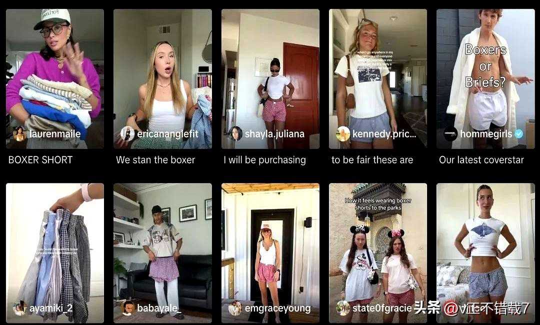 最絕的是傳播路子——TikTok上素人帶火的#boxingshorts話題,播放量吊打?qū)I(yè)時(shí)尚媒體。