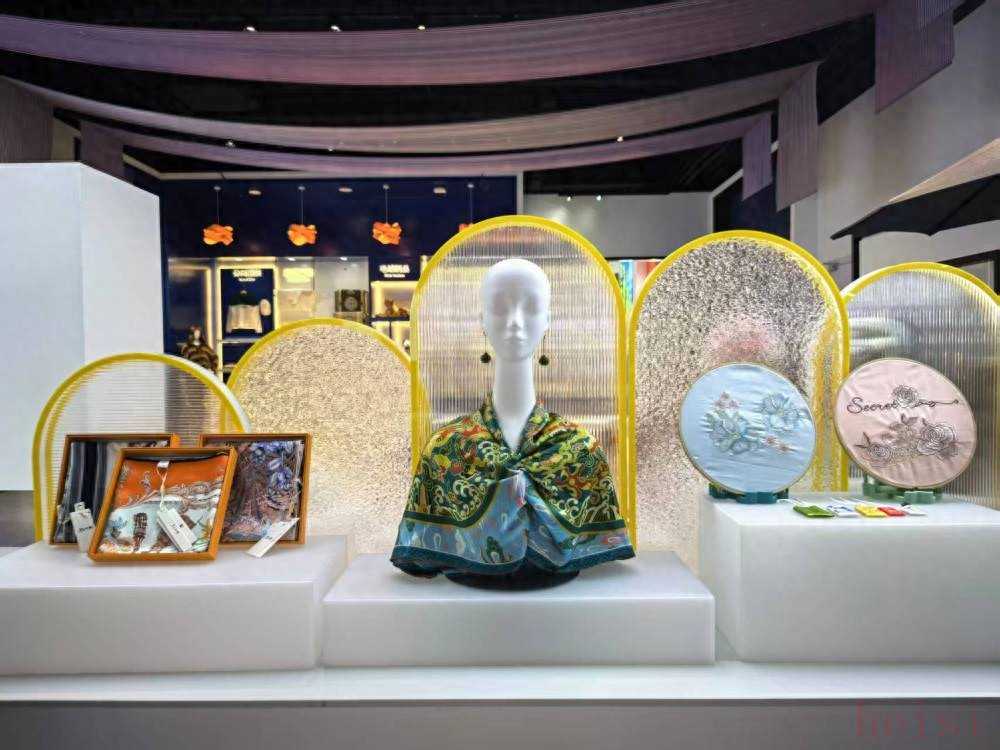 ??吉林化纖產(chǎn)品展覽館里陳列的人造絲織品。 新華社記者 張博宇 攝