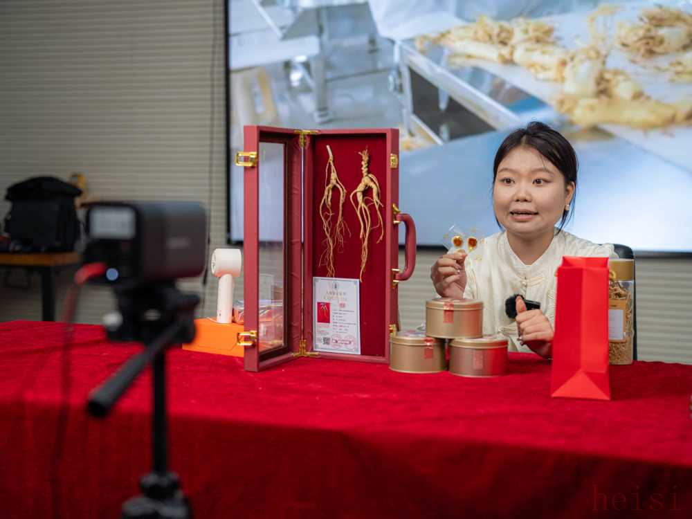 ??7月15日,在永吉縣博大農(nóng)科人參產(chǎn)品電商營(yíng)銷中心,電商主播正在直播售賣當(dāng)?shù)靥厣藚a(chǎn)品。新華社記者 邵澤東 攝