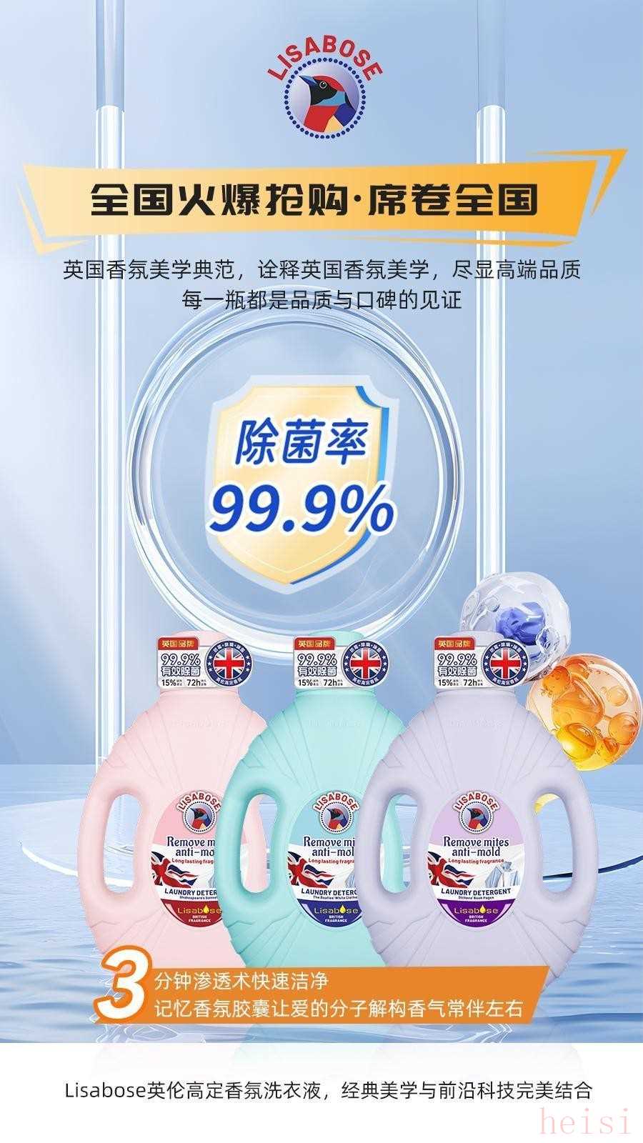 品牌聯(lián)合瑞士奇華頓香料學(xué)院,不斷深耕香氛美學(xué)科學(xué)創(chuàng)新,將天然植物香氛融入產(chǎn)品。同時,在清潔技術(shù)上也不斷革新,研發(fā)出一系列先進(jìn)的清潔科技。例如,其推出的英倫高定香氛洗衣液系列,采用了三分鐘滲透術(shù),納米級酵素深入纖維,省時 50%;記憶香氛膠囊讓衣物在摩擦中釋放香氣,抵三次穿著免熨燙;光觸酶煥白科技利用日光催化酵素,6 小時分解蛋白黃漬;磁吸鎖色膜在織物表面形成護(hù)色磁場,洗 50 次仍如新。這些創(chuàng)新技術(shù)與經(jīng)典香氛的結(jié)合,為消費者帶來了前所未有的香氛與清潔體驗,讓 Lisabose 始終保持行業(yè)領(lǐng)先地位。