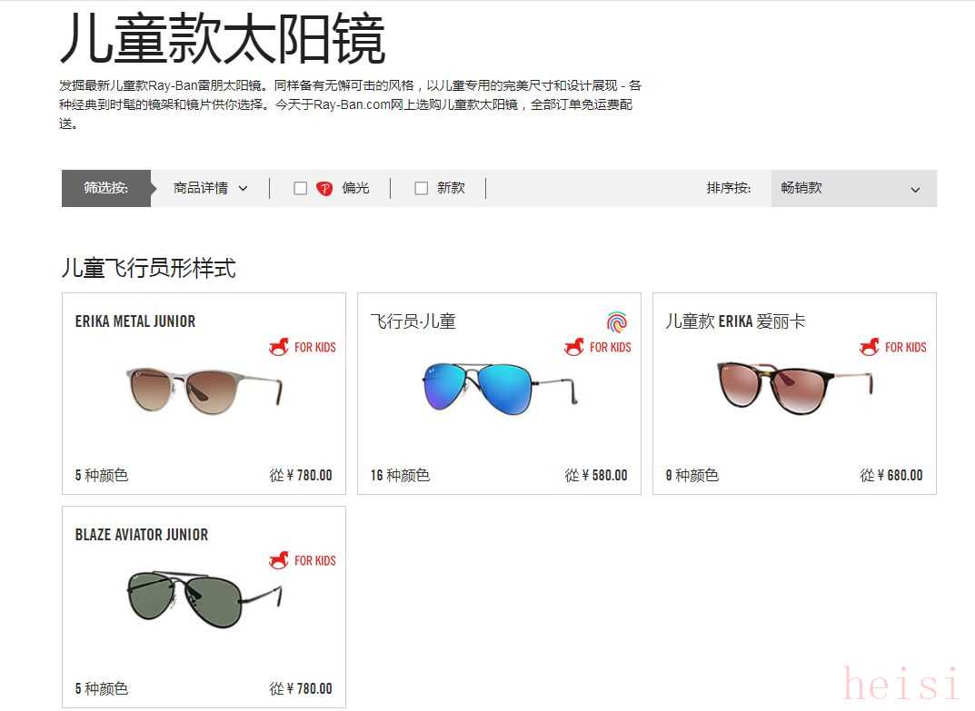成都多家專業(yè)眼鏡店銷售的兒童太陽鏡中,雷朋算是其中的大牌了,或許因為比較貴吧,店員都不要我們摸的!于是我們在其官網(wǎng)上查看了具體信息。