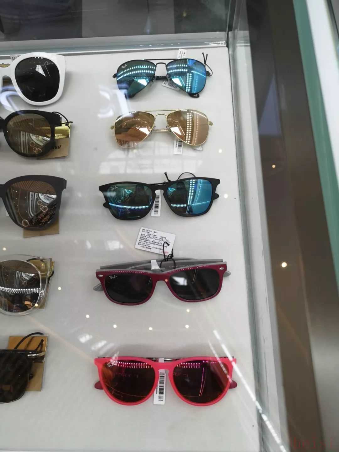 該品牌就是多個商店有的開架專柜品牌,也是為數(shù)不多此類品牌(Jins、EGG*、木九十等)中有售賣兒童太陽鏡的。據(jù)店員介紹,這些兒童太陽鏡就是親子款,鏡架比較可愛,尺寸稍小,其它與成人太陽鏡無異。我們在查看該品牌的標(biāo)簽時發(fā)現(xiàn)不是所有標(biāo)簽都標(biāo)注了鏡片類型等基本信息,感覺有點不靠譜。