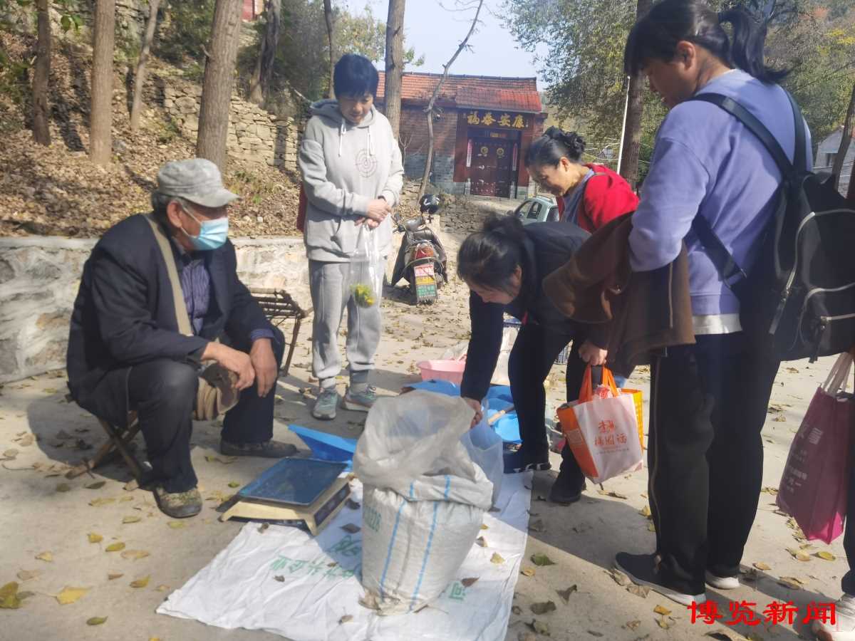 石安峪村村民推銷特色農(nóng)產(chǎn)品。
