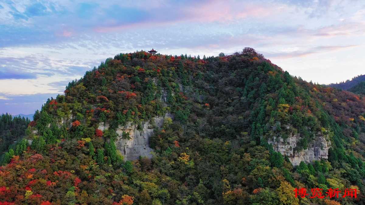 從石安峪村村口沿淄中路一路向東,同樣隱藏于山坳里的云明山在紅葉的裝扮下分外明麗。