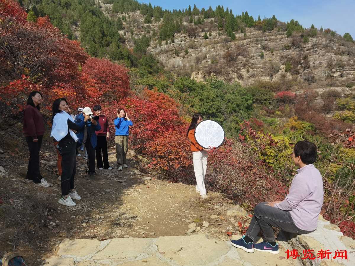 “我們通過(guò)朋友介紹過(guò)來(lái)游玩,這里的風(fēng)景確實(shí)不錯(cuò),今天大家還帶了專門(mén)的攝影師呢?!痹谝黄t葉中,來(lái)自張店的孫女士和朋友們輪番上陣拍照,將一份美麗定格。