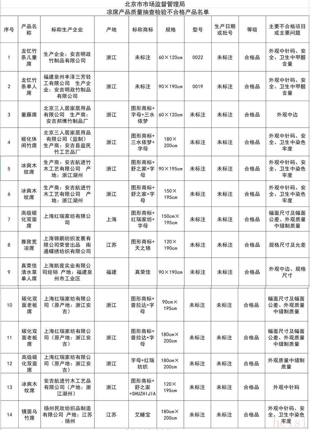 1. "事件:" 近期有14批次涼席類(lèi)產(chǎn)品在進(jìn)行質(zhì)量檢測(cè)時(shí)被發(fā)現(xiàn)不合格。