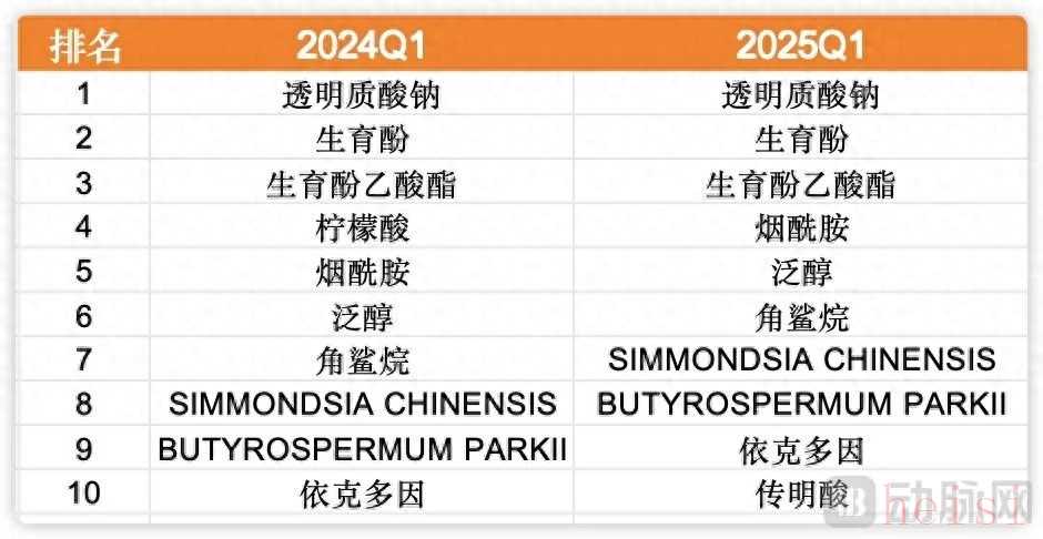 化妝品熱門成分榜單,數(shù)據(jù)源于美麗修行大數(shù)據(jù)