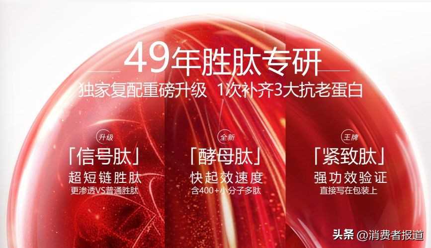 超越之一:功效全新超越,集結(jié)三大王牌勝肽,1次直補(bǔ)三大抗老蛋白
