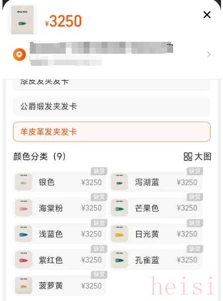 Miu Miu售價(jià)3250元的羊皮革發(fā)夾均為“缺貨” 圖片來源:Miu Miu天貓旗艦店