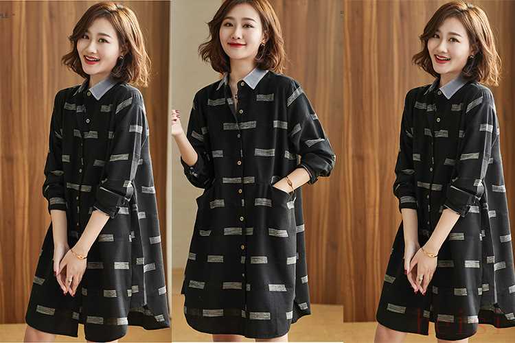 襯衫樣式的連衣裙,滿足了很多妹子喜歡穿襯衣又喜歡穿裙子的時尚小心思,低調(diào)百搭的黑色底色上多了撞色方條圖案的點綴之后,使衣服不再沉悶,增添了層次感但又不絕對花哨,與黑色底色相融合整體柔美又有氣質(zhì)。