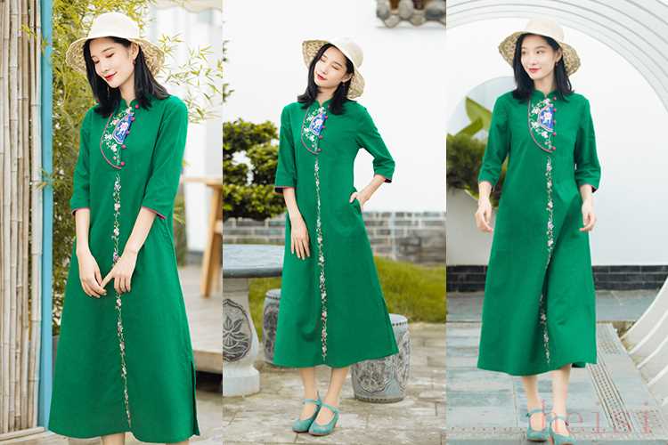 裙子里最能展現(xiàn)女性氣質(zhì)的就是旗袍了,傳統(tǒng)的旗袍對身材的要求比較高,很多人擔心駕馭不了,這種改良款的旗袍就是你的不二之選;這款裙子在保留了傳統(tǒng)旗袍的盤扣元素與民族風棉麻面料相結(jié)合,更顯溫柔恬靜。