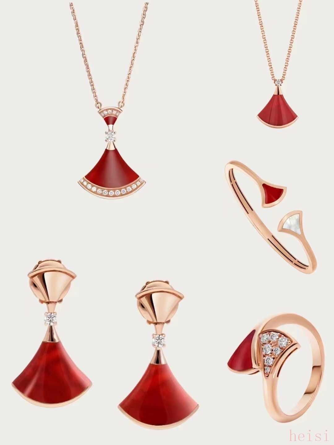 Divas’ Dream系列:采用18K金鑲嵌紅玉髓,有戒指,吊墜,耳釘?shù)阮愋偷氖罪?。是以羅馬卡拉卡拉大浴場馬賽克裝飾吸取靈感,配以現(xiàn)代時尚的設計和精美的紅玉石和鉆石,設計出扇形的圖案,俗稱小裙子或小扇子。