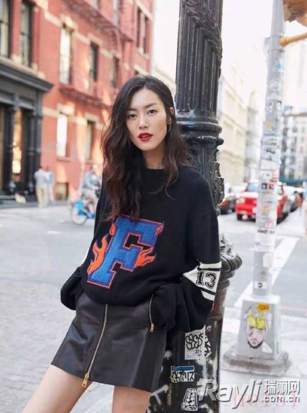 劉雯的puma衛(wèi)衣搭配小皮裙穿的十分帥氣!還有今年最熱的logo元素!