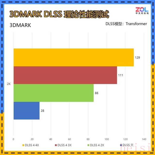 由于DLSS理論測(cè)試最低分辨率為2K起測(cè),我們選擇最低分辨率來看結(jié)果,DLSS 4 4X幀生成與DLSS關(guān)的差距非常大,提升達(dá)到360%左右。