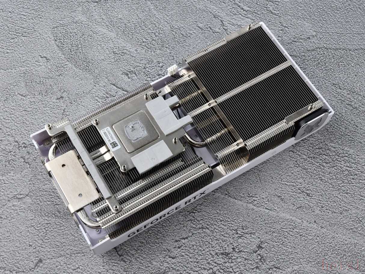 萬麗雪狐 GeForce RTX 5050 OC采用寶拉形象的金屬?zèng)_壓背板,開孔設(shè)計(jì)更利于風(fēng)道流通。