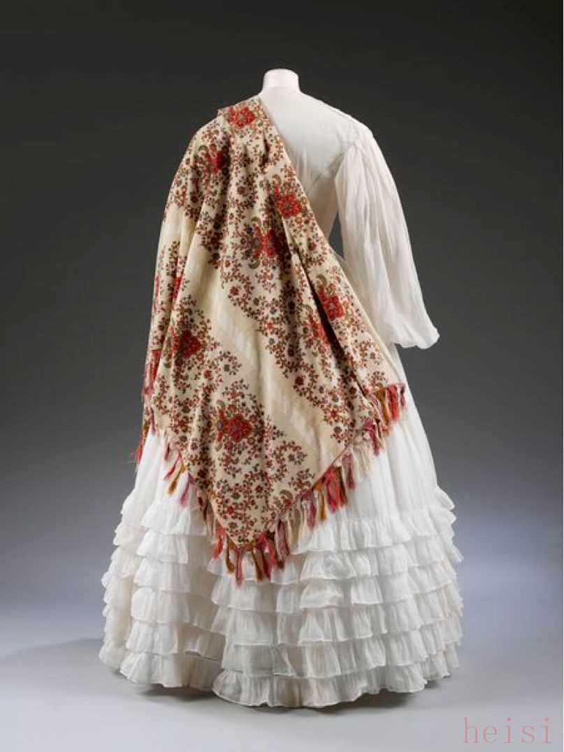 《茶花女》中,小仲馬不止一次地詳細描繪著瑪格麗特的羊絨披肩:“瑪格麗特總是獨自坐車到香榭麗舍大街去,盡量不引人注意,她冬天裹著一條開司米大披肩,夏天穿十分淡雅的長裙?!薄八拈_司米披肩一直拖到地上,兩邊露出絲綢襯衫的寬大邊飾,厚實的藏手籠放在胸前,四周圍著巧妙縫制的皺褶。對于線條的輪廓,就是再挑剔的眼睛也挑不出毛病。”