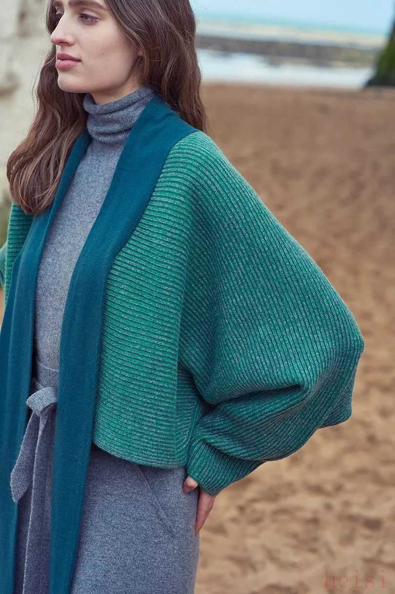"細節(jié)精致:" 精致的滾邊、獨特的紐扣、不對稱設計、拼接元素、鏤空圖案等,讓羊絨衫充滿設計感和藝術感。